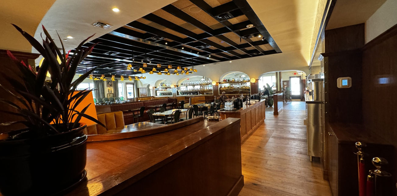 Interior finish-out of a classic New York bistro feel” featuring antique mirrors, a lot of wood, comfortable leather booths, a large brass bar, and general “warm feel.”